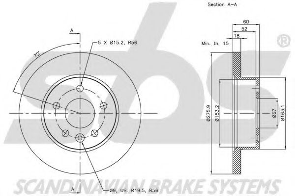 - вид на спирачния диск плътен
