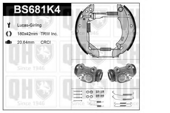 спирачен комплект, барабанни спирачки QUINTON HAZELL